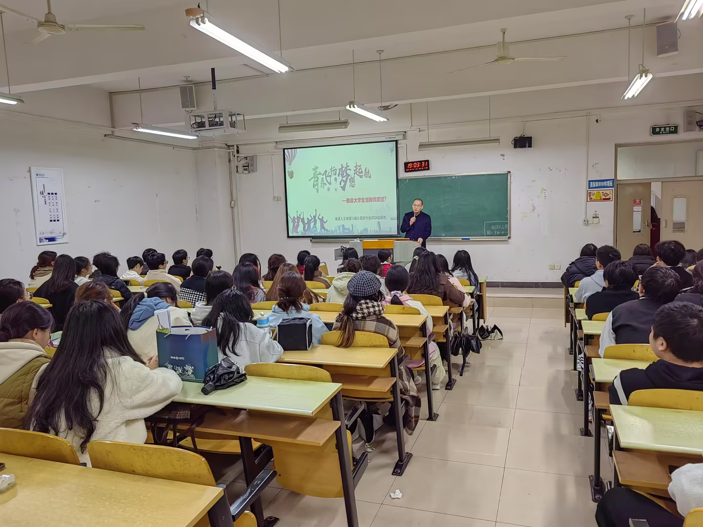 当前位置: 首页 >> 本科教育 >> 正文 启航专业梦,奋进向未来——人文地理与城乡规划系专业教育讲座顺利开展 时间:2024年11月21日 11:27 作者: 武荣伟 2024年11月20日,重庆工商大学人文地理与城乡规划专业教育讲座在江北校区B106举行。人文地理与城乡规划系主任曹珂、专任教师范春副教授、武荣伟副教授及24级人文地理与城乡规划专业全体同学参加了此次活动。活动由曹珂老师主持。 首先,范春老师为同学们做了青春飞扬 梦想启航——我的大学生活如何度过的讲座。范老师从度过大学的三种态度:积极拼搏、随性躺平、持续堕落入手,讲述了大学生活的4个关键要求,一是要构建和谐的人际关系;二是要兜住底线,顺利取得毕业证和学位证;三是禁触红线,做到诚信为人,远离网贷与传销;四是要过有规划的生活。讲座结尾,范春老师分别对大一、大二、大三、大四的关键时间节点做了进一步的阐述。鼓励同学们拼搏进取,励志笃行。 随后,曹珂老师引领学生了解专业所在的系部,从师资力量、教学研究、科学研究、人才培养、学科竞赛、实习实践、就业方向、升学深造等方面,介绍了老中青结合、团结友爱、砥砺奋进、不断开拓的城乡规划系。她勉励同学们在大学阶段珍惜时光、树立终生学习的理念,丰富自己的人生经验,持续进步,塑造有意义的大学生活。 接着,武荣伟老师为同学们做了人文地理与城乡规划探究学习——新时代本科生科研素养的培养讲座。引导同学们要在广泛尝试的基础之上,做好大学生涯的详细规划。每个同学有自己独特的闪光点,要挖掘自身特长,结合学科方向,早日为未来发展奠定基础。他简要介绍了人文地理与城乡规划专业的由来,特色,优势与未来发展趋势。鼓励同学们理解科研、积极进行科研实践。以学长、学姐的真实案例,激发同学们的奋斗意愿。 最后,三位老师与同学们开展了热烈的互动,有针对性地解答了同学们的困惑。在此次新生专业大会上,新生们不仅对自己的专业有了更深入的了解,也对未来的大学生活充满了期待。他们纷纷表示,将珍惜大学时光,努力学习专业知识,积极参与各类活动,不断提升自己的综合素质和竞争力。城乡规划系全体教师希望同学们在新的人生阶段,拥抱未知,坚持梦想,努力拼搏,完善自己,拥有美好未来! 上一条:2022级人文地理与城乡规划专业主干课群实习圆满结束 下一条:太阳集团tyc122cc学生在第十六届全国大学生房地产策划大赛中斩获全国特等奖 【关闭】