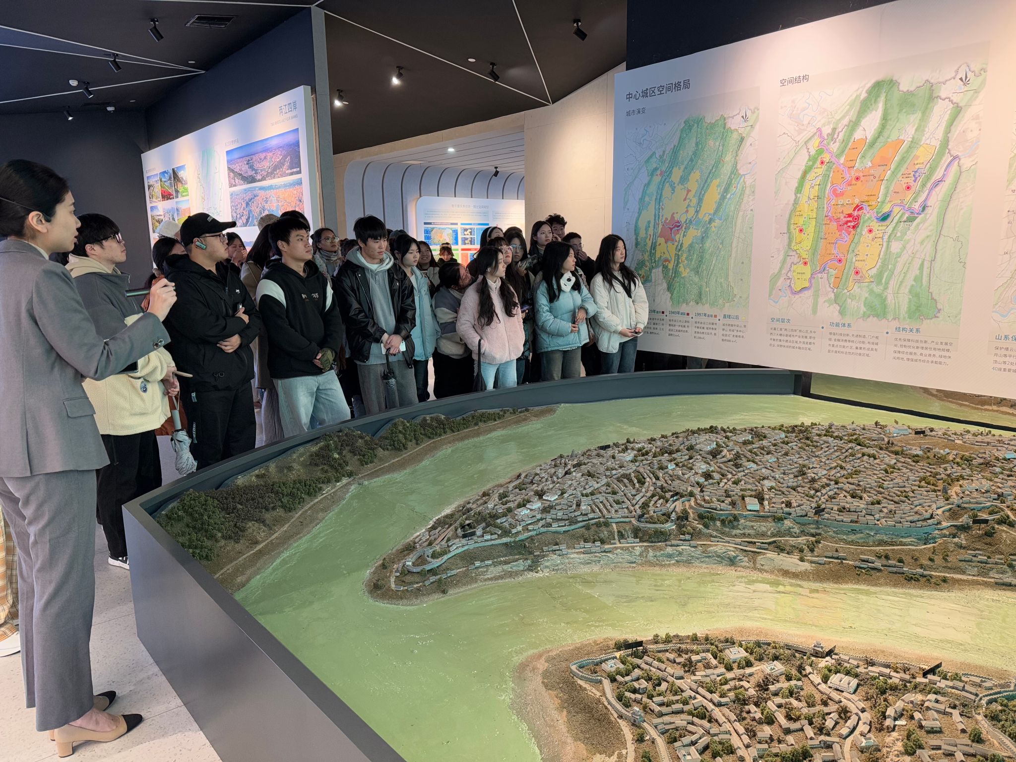 当前位置: 首页 >> 本科教育 >> 正文 2022级人文地理与城乡规划专业主干课群实习圆满结束 时间:2024年11月28日 10:14 作者: 马子路 为进一步提升人文地理与城乡规划专业学生在国土空间规划和城市更新等领域的专业技能,并培养其解决实际问题的能力,2024年11月26日,2022级人文地理与城乡规划专业的70余名学生在曹珂、周琎、孙爱庐、马子路老师的带领下,成功完成了专业主干课群的实习任务。此次专业主干课群实习是专业实习体系中的重要组成部分,属于课程群实习类型,旨在综合检验学生前期规划课程的学习成果,并为后续城乡规划课程的学习打下坚实的基础。实习团队的老师们精心策划,从路线确定——材料准备——实习动员——正式实习,整个过程历时近一个月,确保了实习的顺利进行和高质量完成。 王长征副院长实习动员讲话 同学们聆听实习安排及要求 在本次实习启程前夕,即11月15日,举行了一场实习动员大会。在会上,学院的王长征副院长特别强调了实习期间的安全注意事项,并深入阐述了实习环节在专业人才培养中的重要地位。领队老师孙爱庐随后详细介绍了实习的具体安排及实习成果提交的要求。同时,系主任曹珂老师也对实习中的关键点和核心要素进行了重点强调,确保学生们能够明确实习目标,充分准备,以确保实习活动的顺利进行和高效完成。 同学们听取城市发展讲解 11月26日清晨8点,实习团队按班级划分,乘坐两辆大巴车从主校区启程。至8点50分,全体师生准时抵达首站——重庆市规划展览馆。在馆内,专业讲解员为师生们详细介绍了重庆的地理特征、发展历程、文化脉络、空间结构以及国土空间规划等关键城乡规划议题。随后,学生们分组深入学习并记录了展览馆内的相关规划图纸和城市模型。午后1点,同学们转至重庆市南滨路的龙门浩、下浩里街区,进行实地考察。他们细致探究了这些街区在功能业态、人群活动、历史文化、空间形态、交通及基础设施等方面的更新发展路径。在龙门浩、下浩里街区的3小时实地调研中,同学们得以亲身体验集自然美景与人文景观于一体的历史文化街区和旅游景点,收获颇丰。随着这一天充实而专业的主干课程群实习活动的圆满结束,学生们对城乡规划的理论与实践有了更深刻的理解和认识。 同学们参观城市模型 实地调研圆满结束后,同学们将着手撰写实习报告,包括小组报告和个人报告,以此作为为期一个月的专业核心课程群实习的成果提交。本次实习活动作为课堂教学的自然延伸,将学习场景从教室转移到规划展览馆和历史悠久的传统街区,有效地培养了学生们户外调研与分析的基本技能。通过这一过程,同学们的团队协作意识得到了加强,知识视野得到了拓展,对专业知识的理解也得到了显著加深。这不仅丰富了他们的学术经验,也为未来的职业生涯奠定了坚实的基础。 规划展览馆合影留念 上一条:【审核评估】教研共促同进步,同心砥砺共前行——太阳集团tyc122cc城乡规划系召开系部教研会 下一条:启航专业梦,奋进向未来——人文地理与城乡规划系专业教育讲座顺利开展 【关闭】