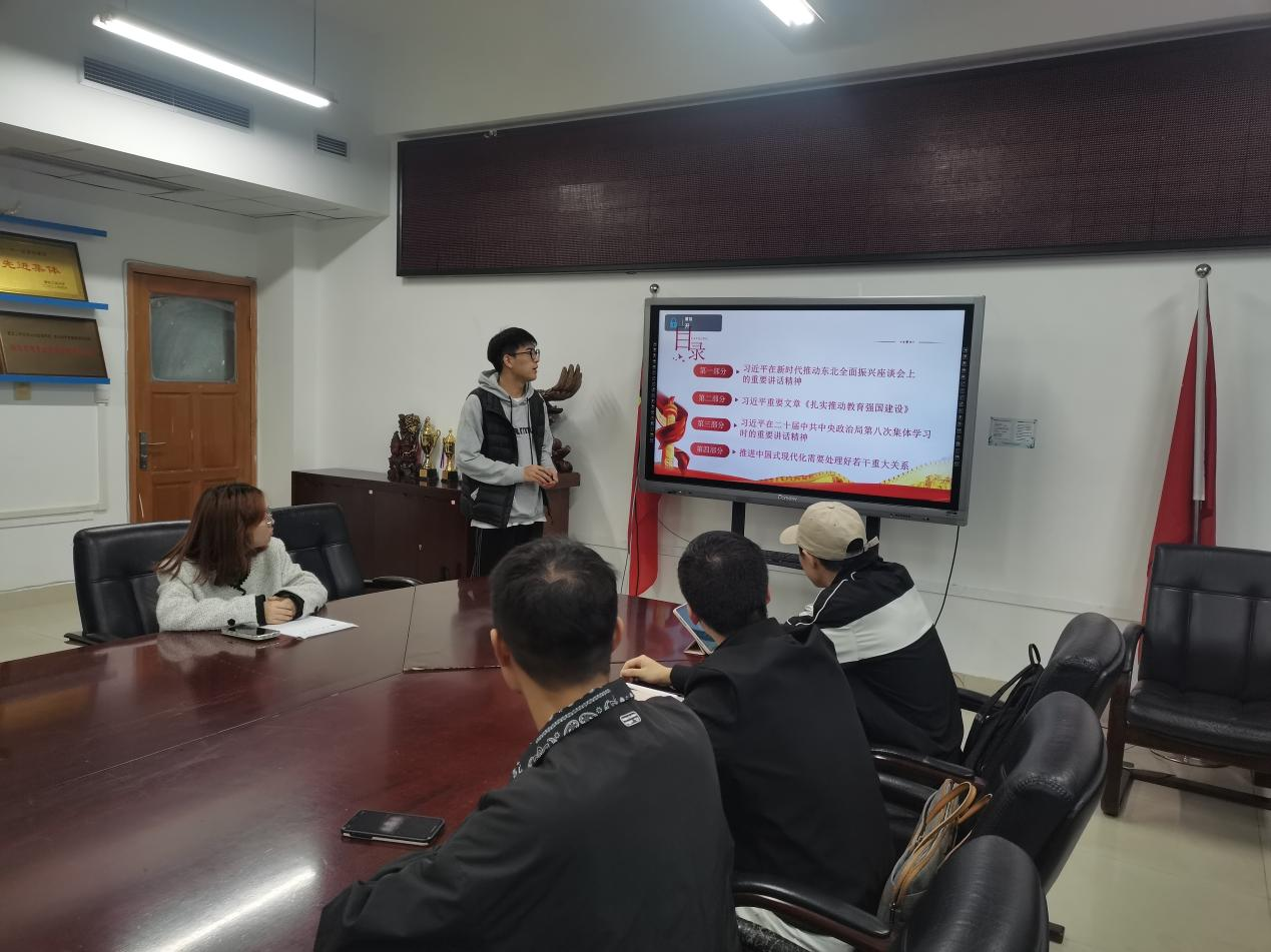 当前位置: 首页 >> 党建双创 >> 正文 太阳集团tyc122cc学生第二党支部召开10月主题党日活动 时间:2023年10月27日 17:19 作者: 李恒 2023年10月27日,太阳集团tyc122cc学生第二党支部在启智楼1004会议室开展10月主题党日活动。活动由代理支部书记刘乂萌同志主持。 本次活动由李癸林和彭钰丹两位同志领学了《习近平在新时代推动东北全面振兴座谈会上的重要讲话精神》《扎实推动教育强国建设》《习近平在二十届中共中央政治局第八次集体学习时的重要讲话精神》《推进中国式现代化需要处理好若干重大关系》等学习内容。领学过后与会同志围绕学习内容展开讨论,并发表学习心得。邓丽同志:“习总书记的讲话精神,我深有感触。作为一名高校教师,有责任、有义务,倾心为建设社会主义现代化强国贡献自己的力量。培养什么人、怎样培养人、为谁培养人是教育的根本问题,同样也是高校教育的根本问题,我们不仅要向学生传授知识,同时也要引导他们掌握科学的世界观和方法论,提高认识和问题的解决能力,正所谓传道授业解惑缺一不可。”其他党员同志纷纷表示,作为大学生,推动教育强国建设重任已在肩上,永远听党话、跟党走,矢志奉献国家和人民,努力成长为担当民族复兴大任的时代新人。 会议接近尾声,刘乂萌同志针对如何在支部学习活动中提升学习效率分享了自己的心得体会和感受,希望在座各位党员同志将主题党日活动学习内容与自身发展相结合,并应用于实践中,不断提升个人的思想素养、理论水平,从而推动本职工作和学习任务高质高效完成。 上一条:太阳集团tyc122cc党委举行红色观影活动 下一条:太阳集团tyc122cc学生第一党支部召开2023年10月主题党日活动 【关闭】