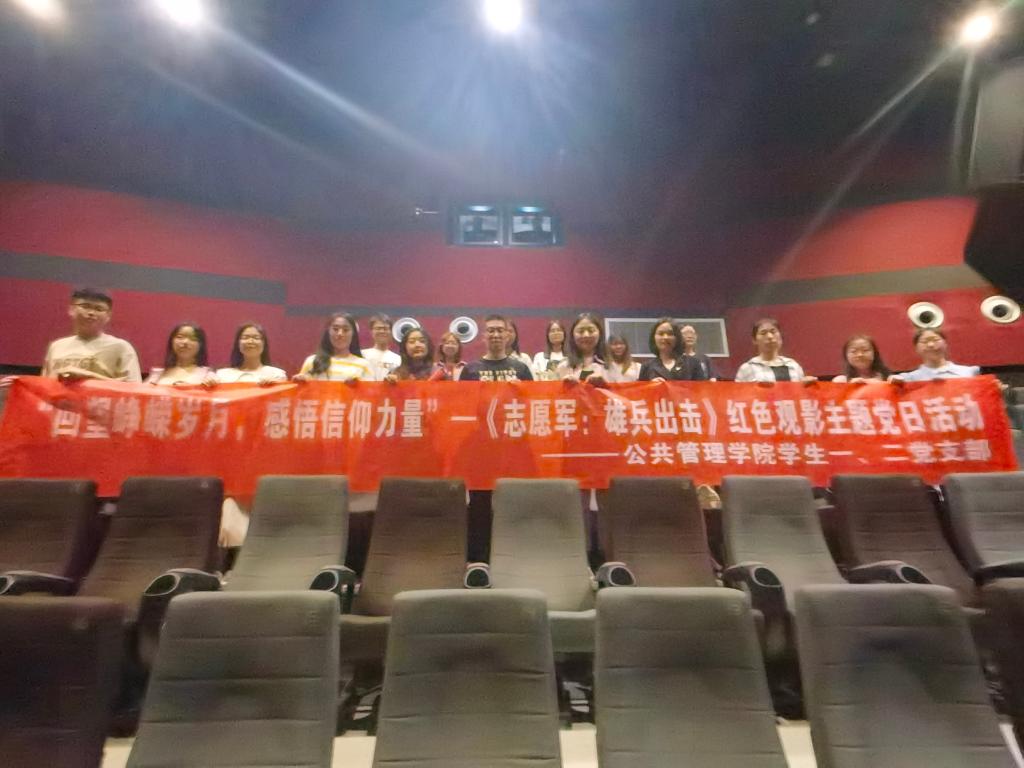 当前位置: 首页 >> 党建双创 >> 正文 太阳集团tyc122cc学生第一、第二党支部顺利召开10月红色观影主题党日活动 时间:2023年10月18日 08:43 作者: 郭爽 今年,我们迎来了中华人民共和国成立74周年,为回首新中国成立之初的艰难处境,重忆入党初心,太阳集团tyc122cc学生第一、第二党支部共同召开“回望峥嵘岁月,感悟信仰力量”——红色观影主题党日活动。 2023年10月17日下午13时许,我院学生第一、第二党支部党员同志共计20人在金逸影城集合,观看电影《志愿军:雄兵出击》。回首1949年建国初期,新中国面临“内忧外患”局面,为维护来之不易的和平、为了世代长久的安稳,中国人民志愿军入朝,抗美援朝战争拉开帷幕。《志愿军:雄兵出击》以志愿军群像为主线,讲述了抗美援朝战争的恢宏史诗。观影过程中,大家神色专注,被革命先辈英勇无畏,挥洒热血的精神深深震撼。观影结束后,大家心情激动,久久不能平复。纷纷表示将不忘初心、牢记使命,继承和发扬先辈们的爱国主义精神,承担好光荣使命和责任。 通过观看红色影片,同志们在浓郁的红色氛围中真切感受到了中国共产党的伟大和中国人民志愿军的勇敢无畏。此次活动的顺利举办,提升了支部党员同志的思想素质和担当意识,是一次深刻的有意义的红色主题教育。 上一条:太阳集团tyc122cc学生第一党支部召开2023年10月主题党日活动 下一条:太阳集团tyc122cc学生第一党支部顺利召开学习贯彻习近平新时代中国特色社会主义思想主题教育专题组织生活会 【关闭】