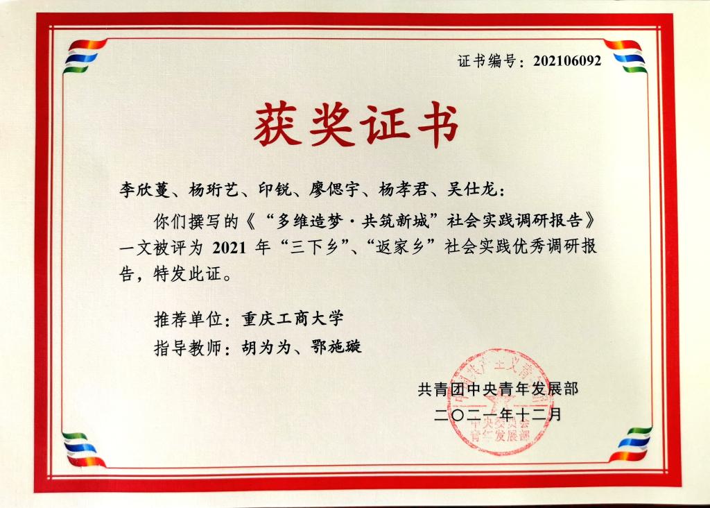 当前位置: 首页 >> 学团工作 >> 正文 学院团委获评2022年五四红旗团委 时间:2022年05月05日 14:02 作者: 邓丽 为传承弘扬五四精神,表彰先进,选树典型,进一步引导广大青年永远跟党走、奋进新征程,以崭新的面貌、奋进的姿态迎接党的二十大胜利召开,4月29日,重庆工商大学2022年五四表彰大会在7100报告厅举行,我院分团委在本次大会中受到了表彰,获得“五四红旗团委”荣誉称号,以及“共青团宣传工作奖”。此外,我院受表彰的还有,“共青团标兵”荣誉称号获得者任瑶,”、三下乡社会实践团中央“优秀调研报告”李欣蔓团队以及若干“优秀团员”、“优秀团干”。 上一条:【访企拓岗专项行动】我院举办“千校万岗·启航青春”综合类春季双选会 下一条:【访企拓岗专项行动】新大正物业集团有限公司来我院召开宣讲会 【关闭】