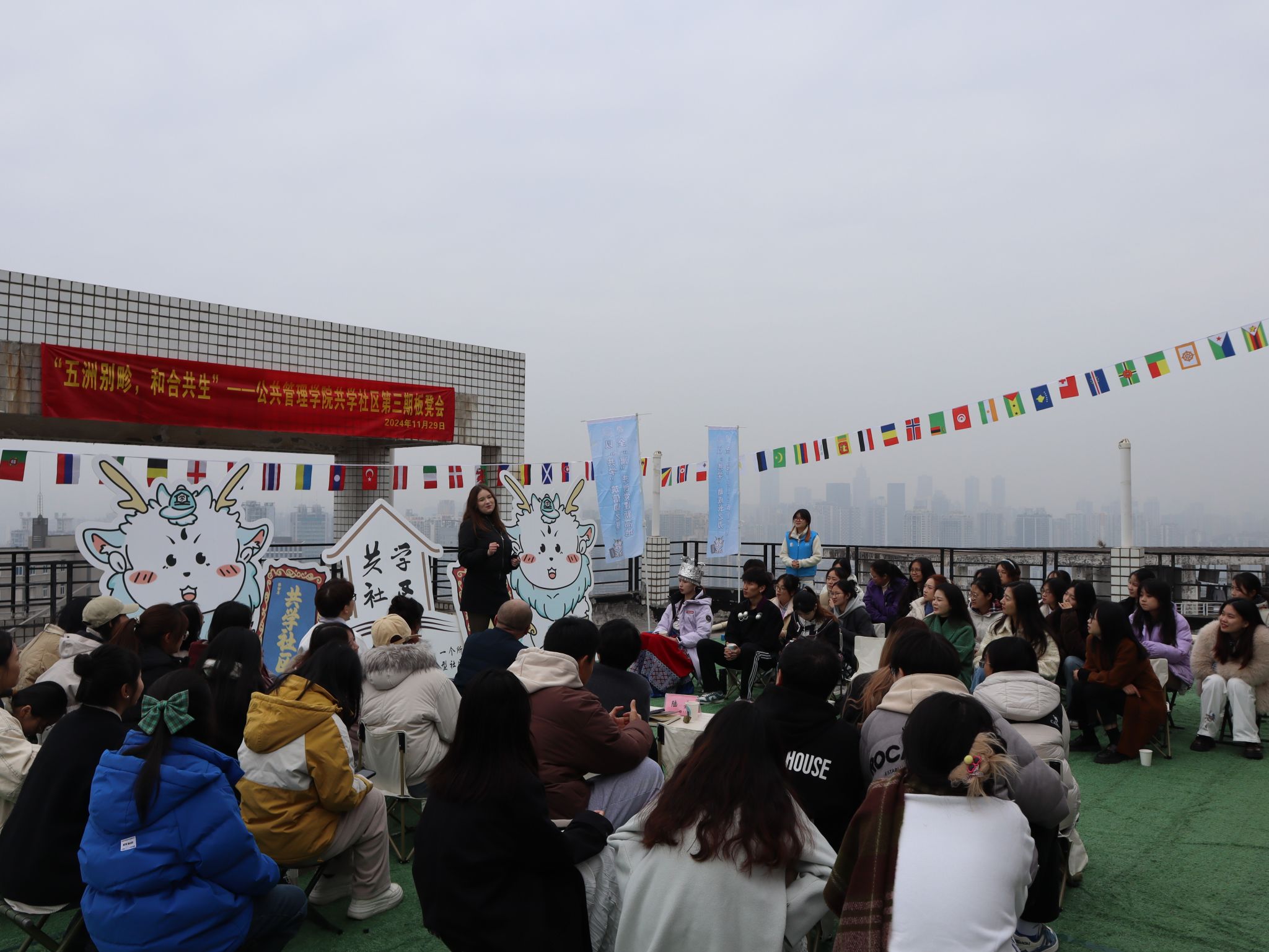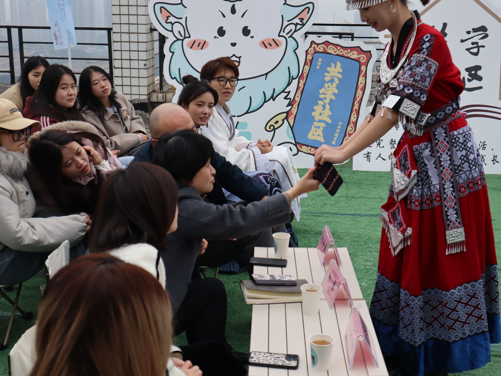 当前位置: 首页 >> 学团工作 >> 正文 “五洲别畛,和合共生”——太阳集团tyc122cc共学社区第三期板凳会圆满结束 时间:2024年12月02日 16:05 作者: 刘乂萌 为深入学习贯彻全国教育大会精神,贯彻落实全市教育大会精神,秉行“以文化人、以文育人、以文润心”文教一体理念,将中华优秀传统文化融入学生“一站式”社区建设。11月29日,太阳集团tyc122cc共学社区第三期板凳会“五洲别畛,和合共生”在北10栋公寓天台热烈开展。党委学工部副部长杨徐勇、学院党委书记陆嘉、副书记谢书楠,来到现场与同学们共同探索中国传统文化的多样性、包容性与创新性。 活动在三个主题环节中渐次展开。“石榴花开,籽籽同心” 环节,来自苗族、彝族、仡佬族的同学,通过精美的苗族刺绣、独特的彝族文字语言、动人的彝族特色歌曲以及仡佬族的特色小吃,为现场师生带来了一场别开生面的民族文化盛宴。这些少数民族文化的分享与展示不仅让师生们领略了不同民族文化的独特魅力,生动呈现了中华优秀传统民族文化的独特魅力。 “山川异域,谊路同行”环节聚焦国际文化交流,来自泰国、老挝、乌克兰的三名留学生分享了他们国家的特色文化以及在中国学习生活的文化体验与感悟,不仅展现了中华文化的国际影响力,也让同学们感受到了不同文化之间的交流与融合。同学们也围绕如何“推动中华优秀传统文化创造性转化和创新性发展”各抒己见,积极表达出自己的想法,为中华文化的传承与创新贡献智慧。 “跨越山海,‘语’你相会” 环节将活动氛围推向高潮。留学生与中国各地同学分别用家乡语言表达对学校、重庆和中国的热爱,不同语言的交汇,演绎出多元文化的和谐共鸣,凸显了文化多样性的独特魅力。深刻诠释了在全球化背景下,中华文化与世界各国文化相互借鉴、共同发展的积极态势。 活动最后,陆嘉指出,此次活动成功搭建了一座跨越国界与地域的文化桥梁,让不同国家与地区的青年学子汇聚一堂。她表示,太阳集团tyc122cc将继续秉承文化育人理念,推动文化传承创新,助力青年学子在多元文化的交融互鉴中成长成才,为文化强国建设贡献青春力量。 太阳集团tyc122cc共学社区“板凳会”已成功举办三期,吸引了来自全校不同学院、专业、年级的几百名学生,教工支部书记、思政课老师、学工队伍等多支育人力量都深入社区将“五育”融合贯穿学生成长成才全过程,利用“五育”各美其美的育人内涵共育“五美”新青年。 下一条:互通心声 共话成长—共学社区接待日(第11期) 【关闭】