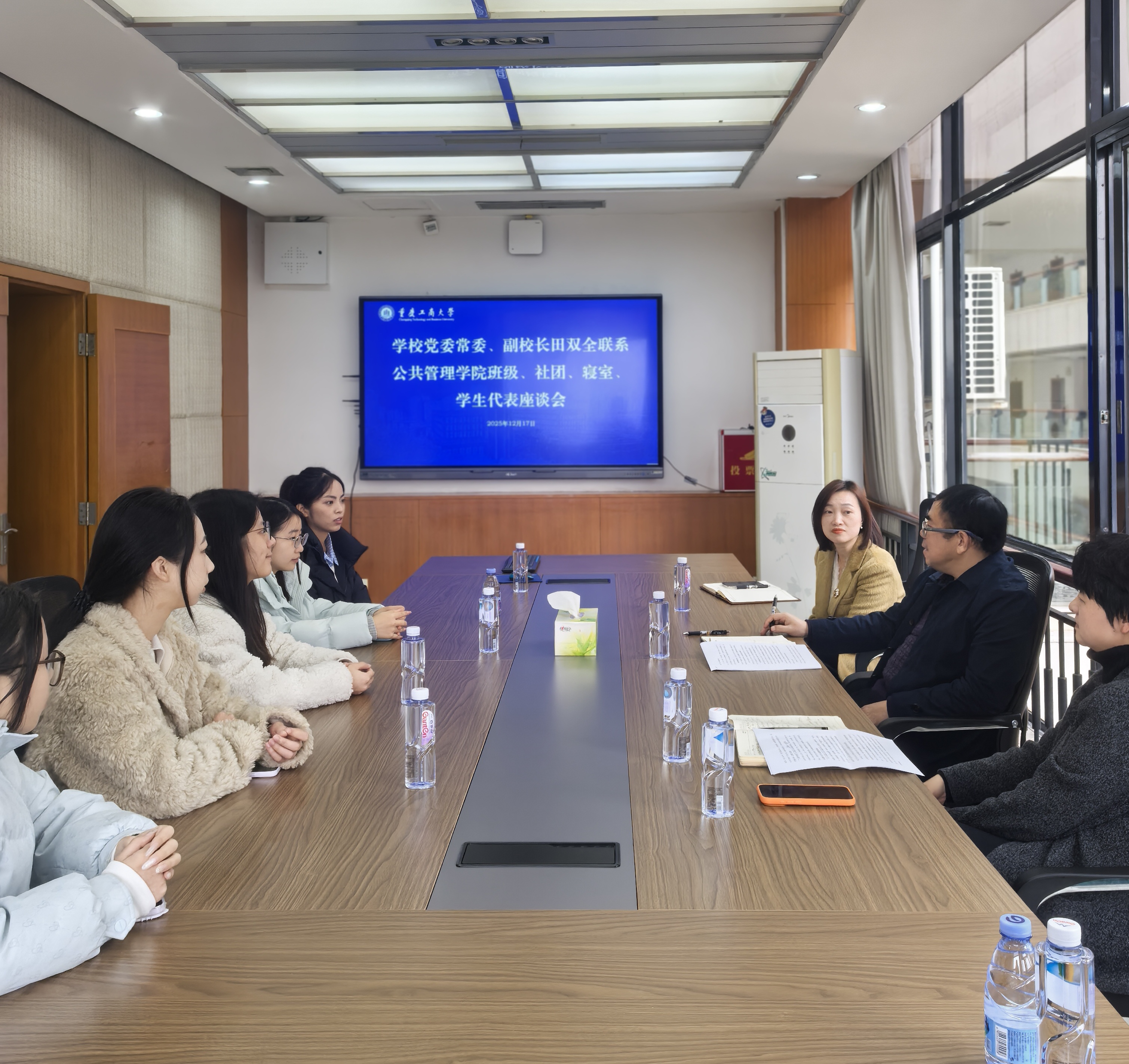 当前位置: 首页 >> 学团工作 >> 正文 面对面倾听心声 实打实助力成长——副校长田双全与太阳集团tyc122cc学生代表亲切座谈 时间:2025年12月18日 16:35 作者: 邓丽 12月17日下午,校党委常委、副校长田双全与其联系的太阳集团tyc122cc班级、社团、寝室及学生代表在厚德楼4002会议室举行座谈会,深入了解学生学习生活状况,倾听青年心声,共话成长发展。学院党委书记陆嘉、副书记谢书楠、分团委书记邓丽参会。 座谈会上,学生代表们结合自身实际,分享了在思想引领、学业发展、班级建设、志愿服务、宿舍文化等方面的经历与感悟。23土管一班学生代表介绍了班级在团支部建设、学风建设、学科竞赛等方面的开展情况以及取得的突出成绩,展现了团结进取、多元融合的班级风貌;南十六A1-407寝室代表讲述了室友之间互帮互助、共同营造优良学习生活环境的生动故事;小红馨公共卫生志愿服务协会会长汇报了协会在急救技能培训、公益服务等方面的创新实践与扎实成效;少数民族学生代表也坦诚交流了自身在学习、生活中的收获与困惑,表达了积极向上的成长诉求。 田双全认真听取了每一位同学的发言,并不时互动交流,对同学们展现出的昂扬精神面貌、扎实学业基础、丰富实践成果和社会担当意识给予了充分肯定。他结合学校发展定位和人才培养目标,对同学们提出殷切期望:一是要勤学善思,锤炼过硬本领,在专业学习和创新实践中不断突破;二是要注重全面发展,积极参与文体活动与社会实践,提升综合素质;三要强化集体意识,营造团结友爱、互助共进的班级与寝室氛围,共同成长进步。他表示,学校始终坚持以生为本,将持续关注学生需求,优化育人环境,为同学们的成长成才提供坚实支持。他表示,非常乐意在同学们在学习、工作和生活中遇到困难的时候为他们排忧解难,希望和同学们保持联系。 上一条:【主题教育】学院党委副书记谢书楠一行赴北京工商大学调研学习 下一条:研途领航明方向 答疑解惑助成长—2023 级人文地理与城乡规划专业考研指导交流会成功举办 【关闭】