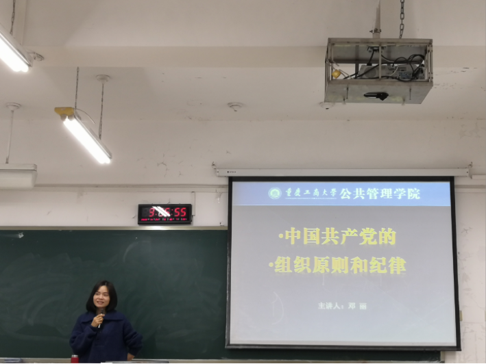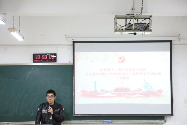 当前位置: 首页 >> 党建双创 >> 主题党日活动 >> 正文 中共重庆工商大学委员会党校太阳集团tyc122cc分党校2020年入党积极分子培训班胜利落幕 时间:2020年11月25日 10:49 作者: 郭爽 2020年11月21日,中共重庆工商大学委员会党校太阳集团tyc122cc分党校2020年入党积极分子培训班于南岸校区博智楼07203胜利落幕。太阳集团tyc122cc党委书记张维贵教授、公共管理学院学团办主任兼学生一支部组织委员文敏老师、公共管理学院学生一支部书记兼本次培训班班主任郭爽老师、公共管理学院学生二支部书记高宏老师以及公共管理学院学生二支部邓丽老师出席并担任主讲老师,太阳集团tyc122cc30名入党积极分子参加了此次培训班教学。 2020年11月20日的开班典礼上,班主任郭爽老师首先肯定了此次吸收成为入党积极分子的30名同志并向他们表示祝贺。同时表示成为入党积极分子只是一个中间过程不是终点,鼓励他们继续向党组织靠拢,争取早日成为一名合格的党员同志。然后郭爽老师重点介绍了此次培训班的培训纪律及有关规定,希望学员们遵守相关规定,按照要求完成好相关任务。此次培训班共分六讲,第一讲由学院党委书记张维贵教授针对“党的十九届五中全会精神”做了专题讲座。第二讲由学院学生二支部书记高宏老师主讲,向同学们讲述了中国共产党的指导思想。第三讲由学院学生二支部邓丽老师主讲,从民主集中制出发强调了中国共产党的组织原则和纪律。第四讲由学院学生一支部组织委员文敏老师主讲,详细地向同学们介绍了中国共产党的性质、宗旨、纲领和现阶段的任务。第五讲由太阳集团tyc122cc学生一支部书记郭爽老师主讲,主要给同学们深入解读了中国共产党员。第六讲是集中观看专题节目——《榜样4》,在观看完专题节目后,本次入党积极分子培训班也胜利落下帷幕。 本次培训班旨在对入党积极分子进行培养教育,提升其理论知识水平和党性,培养合格的社会主义接班人。通过此次培训学习,学员们对中国共产党有了更深层次的理解和认识,思想觉悟得到升华,也更加坚定了入党的决心。希望入党积极分子在党课学习形式之外,积极自学,并学以致用,争取早日在思想上入党,进而行动上入党。 太阳集团tyc122cc分党校2020年入党积极分子培训班开班典礼 张维贵书记做“十九届五中全会精神”专题讲座 高宏老师讲述中国共产党指导思想 邓丽老师讲述中国共产党的组织原则和纪律 文敏老师讲述中国共产党的性质、宗旨、纲领和现阶段任务 郭爽老师阐述中国共产党党员 全体学员观看《榜样4》 上一条:太阳集团tyc122cc学生一支部2020年11月第二次党员大会顺利召开 下一条:太阳集团tyc122cc学生一支部2020年11月组织生活会及党员发展大会顺利召开 【关闭】