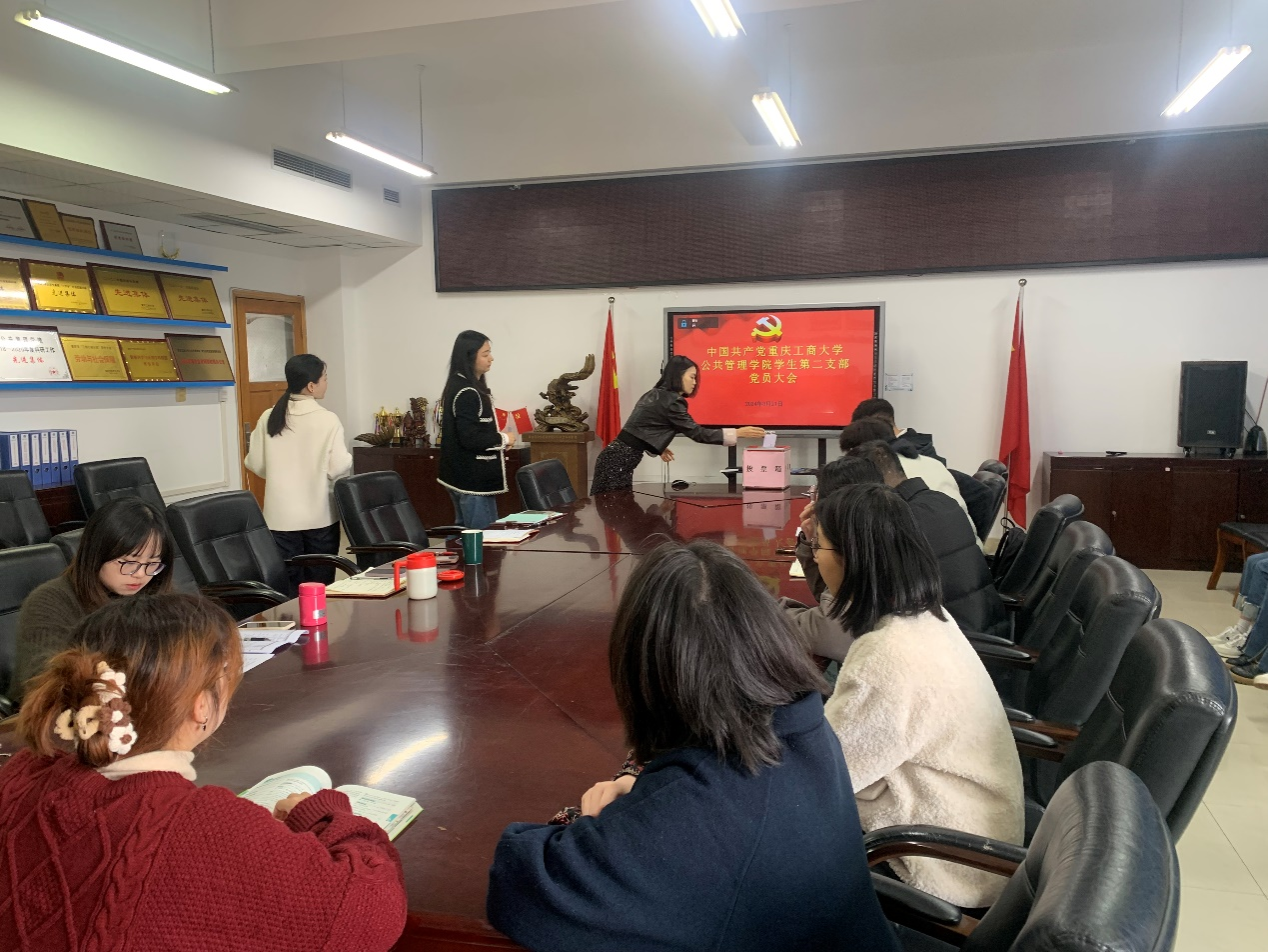 当前位置: 首页 >> 党建双创 >> 主题党日活动 >> 正文 太阳集团tyc122cc学生第二党支部党员大会顺利召开 时间:2024年03月21日 16:45 作者: 李恒 3月21日,太阳集团tyc122cc学生第二党支部召开党员大会。进行支部委员换届选举工作。 大会在庄严的国歌中拉开序幕。会上,支部书记蒋杰首先代表支部委员会做工作报告,总结回顾了支部一年来的主要工作、取得的成绩和存在的不足。按照选举办法有关规定,大会在组织严密、程序规范、气氛热烈中进行。在监票员游宗源、计票人韩德清的监督计票下,选出了新一届支部委员会委员。随后,新一届支部委员会召开第一次会议,选举产生了支部书记,并研究确定各委员职责分工。 新一届支部委员会书记李恒表态发言,她表示,将在今后的工作中带领全体党员不断加强“四个自信”,牢固树立“四个意识”,坚决做到“两个维护”,充分发挥党组织的战斗堡垒作用和党员的先锋模范作用,彰显学院党建特色,全面推进党支部党建工作迈上新台阶。 上一条:太阳集团tyc122cc学生第一党支部2024年4月主题党日活动顺利召开 下一条:太阳集团tyc122cc学生二支部召开2024年3月主题党日活动 【关闭】