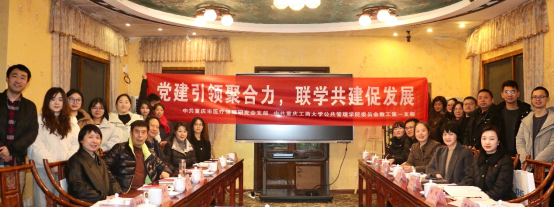 当前位置: 首页 >> 党建双创 >> 主题党日活动 >> 正文 党建联建聚合力,携手共进促发展——重庆工商大学太阳集团tyc122cc委员会教工第一支部与中共重庆市医疗保障研究会支部举行党建联建活动 时间:2025年01月10日 14:35 作者: 何增华 2025年1月7日下午,中共重庆工商大学太阳集团tyc122cc委员会教工第一支部与中共重庆市医疗保障研究会支部,在重庆工商大学南山书院沽碕舫成功举行党建联建活动。本次活动以“党建引领聚合力,联学共建促发展”为主题,旨在深度加强双方党组织的交流与合作,携手推动医疗保障事业与学校公共管理学科的蓬勃发展。活动由太阳集团tyc122cc院长李孜教授主持。 活动伊始,太阳集团tyc122cc党委书记陆嘉与重庆医疗保障研究会会长石存玉共同为“共建党支部”揭牌,标志着双方在党建工作上的深度合作正式拉开帷幕。 揭牌仪式后,共建党支部开展第一次联合主题党日活动,重温入党誓词,并开展理论学习。陆嘉领学中央经济工作会议精神,石存玉领学全国医疗保障工作会议精神。 共建党支部的成立,强化了双方党支部的交流合作,深化了党建引领事业高质量发展成效,为推动学院与重庆医疗保障研究会开展产学研一体发展奠定了良好基础。太阳集团tyc122cc将以此次联建活动为契机,持续深化合作,开展有组织的科研和社会服务,服务现代化新重庆建设。 上一条:太阳集团tyc122cc学生第一党支部召开2025年1月主题党日活动 下一条:太阳集团tyc122cc召开2024年度支部书记述职评议 【关闭】