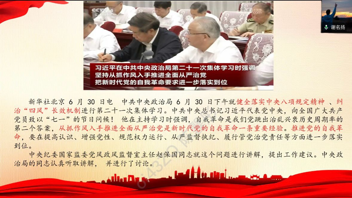 当前位置: 首页 >> 党建双创 >> 主题党日活动 >> 正文 太阳集团tyc122cc学生第一党支部7月主题党日活动 时间:2025年07月08日 10:58 作者: 杨阳 2025年7月7日,太阳集团tyc122cc学生第一党支部通过企业微信平台召开7月主题党日活动。会议由学生党员黄政龙同志主持,支部全体党员线上参会。 会上,谢书楠同志介绍了新加入支部的党员教师杨阳、梅艺同志,并说明两位教师今后将承担学生党支部的指导与管理工作。她表示,希望全体党员加强协作、密切联系,在组织生活中发挥好师生协同作用,持续推动支部建设迈上新台阶。 随后,朱羿明、谢名扬同志分别领学了《团结奋斗是中国人民创造历史伟业的必由之路》(《求是》杂志刊发)和习近平总书记在中共中央政治局第二十一次集体学习时的重要讲话精神,引导党员深刻理解“团结奋斗”的时代价值与现实意义。王若瑜同志分享了黄君珏烈士的英勇事迹,展现了革命先烈的坚定信仰与牺牲精神。刘念同志结合全国劳模冯秋荣的先进事迹,强调要将责任担当融入实际行动。陈馨彤同志围绕中央八项规定,倡导学生党员弘扬优良作风,抵制形式主义与享乐主义。 最后,谢书楠同志在总结中表示,假期既是身心调整的重要阶段,更是加强理论学习、锤炼党性的关键时期。她鼓励全体党员持续学习、主动作为,强化与共学社区、党员服务站的协同联动,推动党建与实践深度融合、服务实效持续提升,为增强支部凝聚力与组织力打下坚实基础。 上一条:太阳集团tyc122cc学生第二党支部召开2025年7月主题党日活动 下一条:公管学院陆嘉书记主讲专题党课——党在新时代的“徙木立信”之举 【关闭】