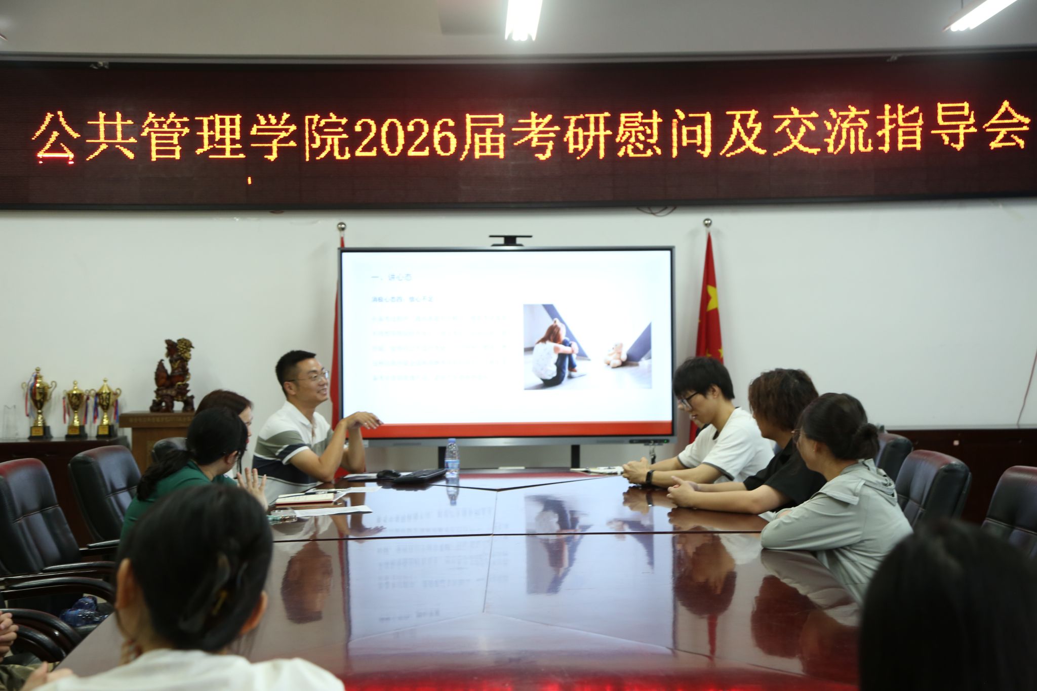 当前位置: 首页 >> 学团工作 >> 学团快讯 >> 正文 研途送暖,温情助航——太阳集团tyc122cc2026届考研慰问及交流指导会 时间:2025年09月30日 14:31 作者: 梅艺 为鼓舞考研学子斗志,传递学院温暖关怀,9月29日下午,太阳集团tyc122cc党员服务站在启智楼1004会议室组织召开2026届考研慰问及交流指导会。太阳集团tyc122cc党委书记陆嘉、院长李孜、党委副书记谢书楠、土地资源管理系主任杜挺、城乡规划系主任曹珂以及考研学生参会。 会议按报考专业大类分两个专场。第一场由陆嘉、谢书楠、杜廷参会。活动伊始,陆嘉、谢书楠、杜廷一同为同学们送上精心准备的慰问礼品。陆嘉对现场考研学子积极备考、勇于追梦的精神风貌给予充分肯定。她在发言中强调,考研是通过学术养成锤炼思辨能力、拓宽眼界、实现人生二次选择的重要途径,勉励学生科学规划、瞄准目标、全力冲刺。随后,杜挺围绕“心态、策略、信心”三大关键点与同学们交流。他精准剖析了备考中常见的负面状态,并给出了接纳情绪、调整预期的具体建议,通过分析考公考编对高学历的倾斜,强调了考研的重要性,鼓励学生坚定考研信心,认真复习。 第二场由李孜、谢书楠、曹珂参会。李孜介绍了学院在学科建设、师资力量与发展前景等方面的整体优势,鼓励学生继续深造。曹珂在人文地理与城乡规划专业方面对考研学生进行了指导。最后,谢书楠强调在当前考研冲刺的“关键节点”,全体考研学子要继续保持目前良好的复习状态,最后的胜利往往在于坚持。 此次慰问及交流指导会不仅为考研学子带去物质上的支持,在专业方面给予指导,更在精神层面注入了坚定与温暖。太阳集团tyc122cc党员服务站将持续关注学生备考动态,做好全过程保障与服务,共同续写太阳集团tyc122cc学子的研路新篇章! 上一条:太阳集团tyc122cc2025年国家奖学金评定公示 下一条:以勤助心,自立自强——太阳集团tyc122cc举办2025-2026学年第1学期学生助理培训交流会 【关闭】