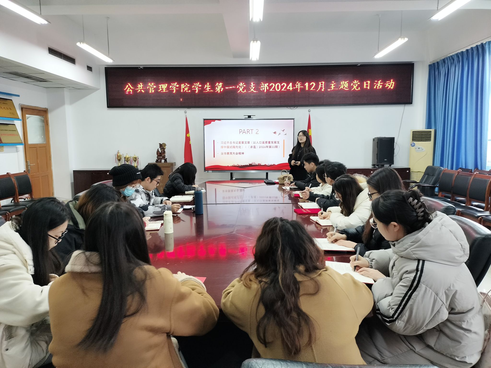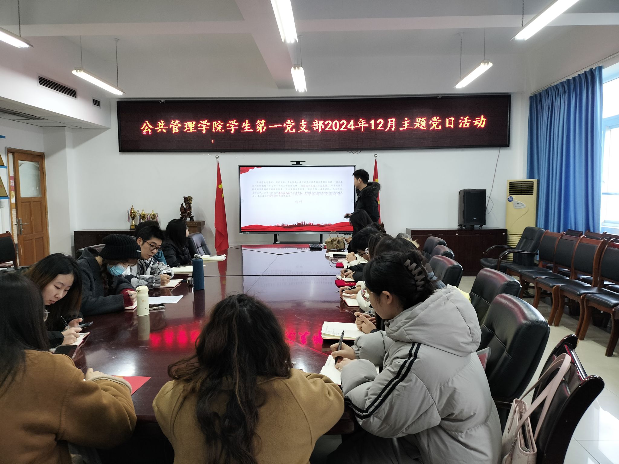当前位置: 首页 >> 党建双创 >> 正文 太阳集团tyc122cc学生第一党支部召开2024年12月主题党日活动 时间:2024年12月26日 17:00 作者: 郭爽 12月26日,太阳集团tyc122cc学生第一党支部在81004会议室召开主题党日活动。会议应到18人,实到17人,请假1人。本次活动由支部书记郭爽主持。 会议伊始,由吴振彪、周琪两位同志领学了《习近平总书记在湖北考察时的重要讲话精神》、《习近平总书记对社会工作作出的重要指示精神》、习近平总书记重要文章《以人口高质量发展支撑中国式现代化》(《求是》2024年第22期)、《全市教育大会精神》等学习内容。接着,在“党课我来讲-党史小故事分享”活动中,胡岚渝同志讲述了一个“碧血丹心为革命,初心不改有后人”的烈士——夏明翰同志的故事。领学和分享结束后,与会同志纷纷发表感悟。黄政龙同志强调青年党员应重视社会工作,从群众中来到群众中去。田高嘉同志则提出党员同志应坚定文化自信,在校园建设中贡献力量。 最后,支部书记郭爽作总结发言。他指出,党员同志要紧密结合时政热点素材,将其应用于毕业论文选题或者学科竞赛中。全体党员同志要时刻谨记自己的党员身份,关注身边同学的思想动态以及心理问题。同时,郭爽同志总结过去一年支部取得的成就,指出支部建设中存在的不足,并提出相应的改进措施,希望新的一年全体党员同志坚持不懈地学习,自觉强化责任担当,共同夯实支部建设基础工作。 上一条:太阳集团tyc122cc学生第一党支部召开2025年1月主题党日活动 下一条:太阳集团tyc122cc党委理论学习中心组专题学习习近平同志《论教育》 【关闭】