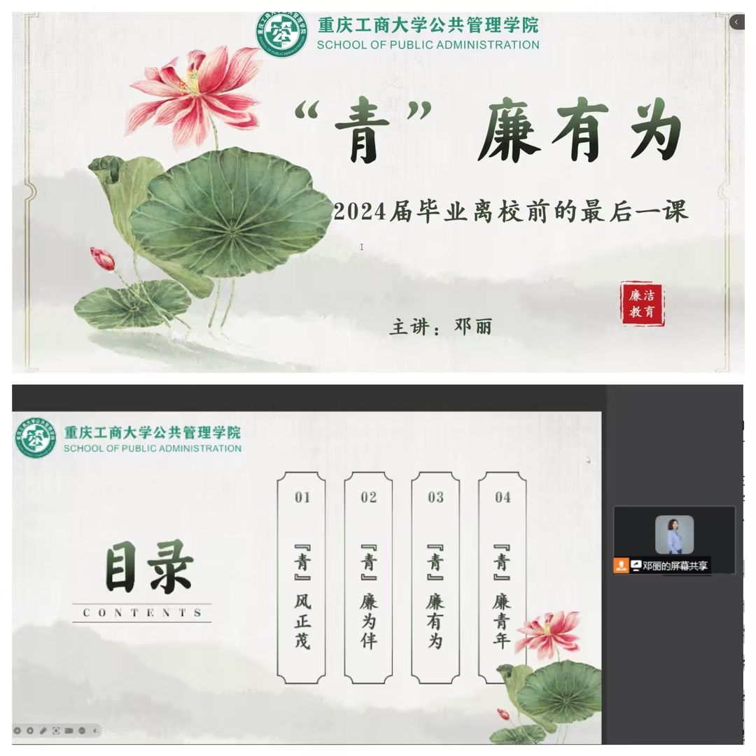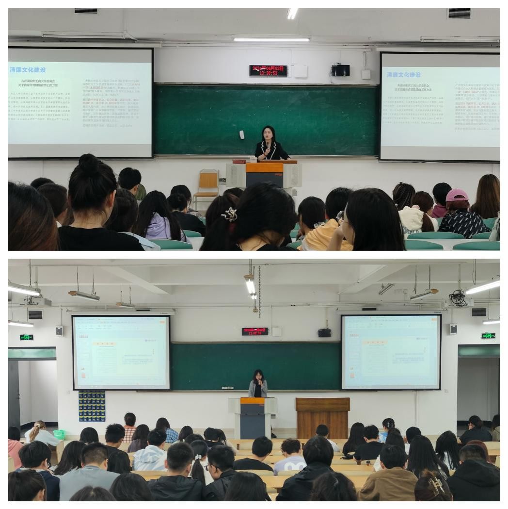 当前位置: 首页 >> 党建双创 >> 主题教育 >> 正文 太阳集团tyc122cc开展廉洁思政“四课”活动 时间:2024年05月14日 17:17 作者: 谢书楠、刘乂萌 太阳集团tyc122cc开展廉洁思政“四课”活动 太阳集团tyc122cc紧紧围绕立德树人根本任务,把清廉学院建设纳入学生的第一二三课堂,融入学生成长发展全过程,在学生群体中开展廉洁思政“四课”,即新发展党员的“入党第一课”,毕业生离校“最后一课”,学生党员干部“专题党课”和“主题班课”的思政“四课”活动,分层分类开展纪律教育,筑牢学生廉洁意识。 系好廉洁“第一扣”,以“入党第一课”为先导知责于心 2024年5月14日,学院党委副书记谢书楠在启智楼81004以“守廉洁自律,书写新时代青年党员合格答卷”为题为这一批新发展的23名党员讲授了“入党第一课”。她指出,作为新时代的青年党员同志,应牢记以下四点要求:一要提升政治觉悟,增强组织观念,坚定政治立场,始终保持与党中央的要求高度一致,树立大局观念,主动配合院、系、班级的各项工作。二要密切联系师生,充分发挥党员联系老师与同学的纽带作用,关心、团结同学,切切实实的履行好自己的入党誓言。三要时刻牢记党员身份,在学习和工作中积极进取,高标准要求自己,做到学习成绩优秀,工作成绩突出,发挥带头模范作用。四要强化组织观念,遵守组织纪律,以身作则,筑牢党员知敬畏、守底线的意识。 系牢廉洁“导向扣”,以“毕业最后一课”为指南行稳致远 2024年5月7日,学院分团委书记邓丽通过企业微信,以“青廉有为”为题为全体2024届本科毕业生上了“毕业最后一课”,为学生系牢了廉洁“导向扣”。她讲到:“走向社会后,你们将面临成家、立业、做人三件大事。其中,做人是关键,是立身之本、事业之基、幸福之源。请把廉洁作为一种生活方式,诚信做人,廉洁从业,锤炼品德”。并寄语毕业生党员在步入社会后,要时刻牢记党员纪律意识和规矩意识,筑牢廉洁从业道德防线,廉洁自律、恪守诚信,坚守道德高地,守住纪律底线,做政治上的明白人、思想上的清醒人、纪律上的规矩人、行为上的老实人、作风上的正派人。 系紧廉洁“风纪扣”,以“专题党课”为抓手修身律己 学生第一党支部书记郭爽、第二党支部书记李恒分别于2024年4月19日,4月28日在启智楼81004为本支部党员同志讲授了廉洁党课。课上,两位支部书记围绕新修订的《中国共产党纪律处分条例》,带领大家全面学习了《条例》的总则、修订目的、工作原则等,重点讲解了党在政治纪律、组织纪律、廉洁纪律、群众纪律、工作纪律、生活纪律六个维度对党员提出的纪律要求。提醒党员同志要在思想上强化服务意识、责任意识和自律意识,树立正确的权力观、物质观;在道德修养上做到慎初、慎独、慎友、慎言、慎好,系好廉洁“风纪扣”,永葆清正廉洁本色。 系稳廉洁“关键扣”,以“主题班课”为依托坚定信念 辅导员刘乂萌、蒋杰给自己所带班级学生上了一堂廉洁班课,为同学们解读了《共青团重庆工商大学委员会关于清廉共青团建设的工作方案》《太阳集团tyc122cc清廉学院建设实施方案》,希望同学们在今后的学习生活中,自觉养成廉洁自律的品格,从现在做起,坚定理想信念,筑牢廉洁意识,守牢廉洁底线,引领廉洁风尚,做一个廉洁自律、诚实守信的优秀青年大学生。 上一条:学党纪 明规矩 做廉洁党员——太阳集团tyc122cc开展党纪学习教育主题活动 下一条:太阳集团tyc122cc党委开展党纪学习教育读书小组(第一次)集中学习暨5月中心组理论学习会 【关闭】