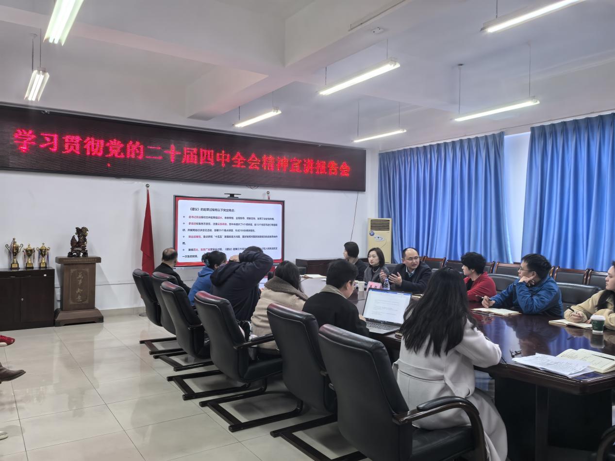 当前位置: 首页 >> 党建双创 >> 主题教育 >> 正文 学校党委常委、组织部部长莫征到太阳集团tyc122cc宣讲党的二十届四中全会精神 时间:2025年12月15日 10:07 作者: 蒋杰 12月11日下午,按照学校党委宣讲工作部署要求,学校党委常委、组织部部长莫征到太阳集团tyc122cc专题宣讲党的二十届四中全会精神。太阳集团tyc122cc在家院领导、系主任、支部书记、教师及学生党员代表参加本次宣讲会,会议由学院党委书记陆嘉主持。 会上,莫征立足国家战略全局、现代化新重庆建设实践与学校发展实际,从党的二十届四中全会基本情况;准确把握“十五五”时期在基本实现社会主义现代化进程中的重要地位;深刻领会“十五五”时期经济社会发展的指导方针和主要目标;全面理解“十五五”时期经济社会发展的战略任务和重大举措;坚持和加强党的全面领导,凝聚起推进中国式现代化的磅礴力量;对标对表深谋实干,体系化推动四中全会精神在重庆一贯到底;凝心聚力提质增效,高质量呈现重庆工商大学“十四五”时期工作亮点等7个方面进行了系统阐释和深入解读。 莫征强调,学习贯彻党的二十届四中全会和市委六届八次全会精神,是当前和今后一个时期的重大政治任务。要切实把思想和行动统一到党中央决策部署和市委部署要求上来,聚焦国家与重庆经济社会发展需求,立足“商工融合、多科协同”办学特色,落实立德树人根本任务,系统谋划并实施好学校“十五五”规划,推动学校高质量发展,为教育强国和中国式现代化重庆篇章贡献力量。 陆嘉在主持时指出,全院上下要以此次宣讲为契机,进一步深化对全会精神的理解和把握,做到入脑入心、见行见效,切实把思想和行动统一到全会精神上来,以实际行动坚定拥护“两个确立”、坚决做到“两个维护”,切实将学习成果转化为推动学院人才培养、学科建设、社会服务等方面的实际成效,主动服务国家重大战略和现代化新重庆建设以及学校高质量发展。 上一条:太阳集团tyc122cc召开2025年度基层党组织书记抓基层党建述职评议会 下一条:深学细悟强担当 凝心聚力谱新篇——太阳集团tyc122cc 学生党支部多层次开展党的二十届四中全会精神宣讲 【关闭】