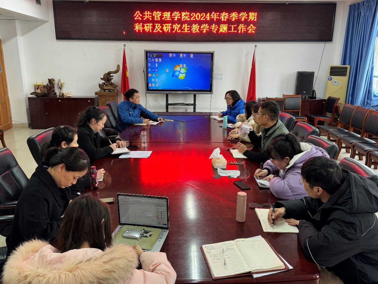 当前位置: 首页 >> 科学研究 >> 正文 学院召开2024年春季学期科研及研究生教学工作专题会 时间:2024年03月08日 11:33 作者: 赖越 2024年3月7日,学院组织召开2024年春季学期科研及研究生教学工作专题会。会议由分管科研及研究生教学工作的余建华副院长主持,李孜院长及学院科研平台负责人、各学科点负责人、MPA教育中心负责人及相关工作人员参加。 本次会议重点就本学期学院科研工作及研究生教学工作进行总体部署安排和讨论研究。会上余建华副院长先组织传达学校及研究生院关于科研及研究生教学相关重要通知精神,并就学院组织开展科研学术活动交流、哲学社会科学重点实验室申报筹备、“两金”项目申报工作等重点工作进行了讨论研究;而后就本学期研究生教学工作中的重要环节进行了部署安排,重点围绕研究生培养方案修订、研究生教学技能大赛筹备、学科交叉融合、研究生教改项目申报等工作进行深入讨论并形成初步方案。 余建华副院长强调2024年是实施“十四五”规划的关键年,要充分认识到全面提升学院科研高质量发展水平、学科建设与研究生培养质量的重要性和紧迫性,在凝练科研主攻方向的基础上,要持续加强科研团队建设,涵养浓厚科研氛围,争取高水平科研成果产出,同时要不断优化研究生培养环节,抓紧修订相关学位点研究生培养方案, 要坚持严格遵循科学道德准则和学术研究规范,聚力营造优良学术氛围和学风作风。最后李孜院长强调要坚持党建引领推动有组织科研,充分发挥组织保障作用,积极破解制约学院科研工作发展的瓶颈,凸显学院学科特色和平台团队优势,也要和学院的研究生人才培养紧密结合,要坚持学生为本,同时严把方向关、质量关和导师关,在提高研究生培养质量上下真功夫。 上一条:重庆市卫健委人口家庭信息中心唐东主任一行到访重庆工商大学人口发展与政策研究中心开展合作共建工作 下一条:余建华副院长代表我校参加数据科学与应用学科联盟启动仪式并作会议交流 【关闭】