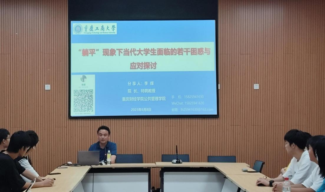 当前位置: 首页 >> 校友工作 >> 正文 助我成长系列活动之“生涯叙事.成长之路” ——校友进课堂,助力学业职业能力提升 时间:2023年06月09日 09:52 作者: 刘乂萌 七秩风华传师道,立德树人谱新篇。为迎我校70周年校庆,凝铸和衷共济的文化氛围,持续推进“助我成长系列活动”,深化“校友进课堂”育人实效,6月8日下午我院邀请了优秀校友、重庆财经学院太阳集团tyc122cc院长李辉教授作专题讲座。 李辉校友以“躺平”现象下当代大学生面临的若干困惑与应对探讨为主题,向同学们分享了个人成长经历与感悟,求学和职业生涯发展与规划、大学生困惑与思考几个方面。他鼓励同学们永远不要低估、怀疑、放弃自己,充分利用好“八小时”之外的时间,用勤勉的精神,循序渐进的态度绽放自己的光彩。讲座中,李辉校友介绍到自己依然为梦想而争取,为实现自身价值而努力,同学们纷纷表示深受鼓舞,引发对自身学业、职业发展规划的反思与憧憬。 值此工商大70华诞,祝愿校友与同学们一路顺遂无忧,跃过千山再回看今日光景,仍觉青春无惧,感动万分! 上一条:凝心聚力谱华章,笃行不怠启新程 ——太阳集团tyc122cc校友分会校庆座谈会圆满召开 【关闭】