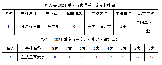 当前位置: 首页 >> 教学动态 >> 正文 我校土地资源管理专业在第三方专业评估中屡创佳绩 时间:2021年11月17日 14:25 作者: 王兆林 日前“校友会”发布了2021年全国专业建设排名情况,在重庆市管理学一流专业排名中,我校土地资源管理专业被评定为研究型专业,达到4星水平,全国排名第九,属于中国高水平专业层次。此前在“软科”发布的专业排名中,我校土地资源管理专业在全国100多所排名闯进40%,属于土管专业B类专业。近年来,我校土地资源管理专业,以“科研创新”和“以赛促学”为导向,不断强化教师科研能力与学生“导师制”培养模式。近5年立项,我校土地资源管理专业科研获得教育部科学研究优秀成果(社会科学)及其他省级奖励等多项。学生在全国公共管理教指委组织专业竞赛中获得“一、二、三等奖”数十项。 2020年本专业获批国家级一流专业建设点,系目前我国财经类高校中唯一、一个国家级一流专业建设点,也是重庆市目前唯一、一个国家级一流专业建设项目。 上一条:公共管理系举办“学术诚信与学术规范”讲座 下一条:太阳集团tyc122cc召开2021级本科人才培养方案修订工作会议 【关闭】