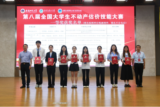 当前位置: 首页 >> 教学动态 >> 正文 我院学子在第八届全国大学生不动产估价技能大赛中斩获佳绩 时间:2024年09月10日 17:08 作者: 杜挺 2024年8月16日至18日,第八届全国大学生不动产估价技能大赛决赛在安徽师范大学隆重举行。学院王兆林、肖轶、杜挺带领2022级6名土地资源管理专业学生和1名人文地理与城乡规划专业学生前往芜湖参加决赛。经过专家评审、两轮决赛的激烈角逐,我院李雨晴、彭一鸣、蒋钰桥、高菘4名同学的作品《重庆市涪陵区大梁山森林山火生态环境损害赔偿评估》荣获全国一等奖;包袁宁、江雨、陈佳彤、吴鹏辉4名同学的作品《基于碳排放和碳汇角度的广阳岛生态服务价值评估》荣获全国二等奖;我院获得优秀组织单位;肖轶、杜挺、王兆林三位老师获得大赛优秀指导教师。 本届不动产估价技能大赛由教育部高等学校公共管理类专业教学指导委员会,全国高校土地资源管理院长(系主任)联席会、中国土地估价师与土地登记代理人协会及中国房地产估价师与房地产经纪人学会指导,安徽师范大学地理与旅游学院和安徽省土地估价师与不动产登记代理人协会承办。大赛围绕“创新与融合:面向高质量发展的不动产估价”主题,旨在打造不动产估价技能人才培养的学科竞赛优质平台,发掘和培养一批不动产估价优秀人才,推动不动产估价教育理论与实践的深度融合,加深高校与行业机构之间的合作与交流。 我院学子在本届大赛中斩获佳绩,不仅展现了我院学子扎实的专业功底和创新能力,也体现了我院一流专业建设的显著成效。 上一条:“迎评促建”人文地理与城乡规划专业教师召开新学期教研活动 下一条:我院学子在第四届全国大学生土地整治与生态修复工程创新设计大赛中喜获佳绩 【关闭】