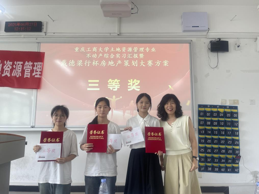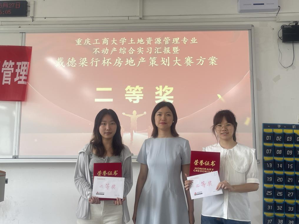 当前位置: 首页 >> 教学动态 >> 正文 土地资源管理专业“第二届戴德梁行杯房地产策划大赛”圆满举行 时间:2025年07月03日 10:05 作者: 邓文静 为深化产学研融合,提升学生实践能力,应对房地产市场发展新需求,2025年6月27日上午,土地资源管理专业2023级不动产综合实习汇报暨“第二届戴德梁行杯房地产策划大赛”在博智楼07505成功举行。本次比赛由重庆工商大学团委主办,太阳集团tyc122cc承办,戴德梁行房地产顾问(重庆)有限公司协办。 重庆工商大学太阳集团tyc122cc副院长王长征出席了本次比赛。戴德梁行房地产顾问(重庆)有限公司的张珺经理、张伶婉经理,重庆工商大学土地资源管理专业的臧亚君副教授担任本次比赛的评委。比赛伊始,王长征副院长致辞,向戴德梁行公司对本次比赛的大力支持表示感谢,肯定了老师同学们的辛勤付出,并预祝本次比赛取得圆满成功。 比赛紧密围绕重庆市“‘两江四岸’国际化山水都市风貌”的核心目标,以渝中区长滨路沿线城市更新改造为实战课题。同学们从市场分析、项目定位、产品设计等方面精心策划改造方案,以现场汇报的方式介绍了作品。评委们从逻辑性、创新性、完整性等维度进行了综合考评。 经过同学们的精彩汇报,来自2023级的纪奕涵等同学获得一等奖,侯永玲、张碧辉等同学获得二等奖,李享茜、张瑞雪、李明佳等同学获得三等奖。 本次比赛是重庆工商大学土地资源管理专业深化“产学研”协同育人的创新实践。通过引入真实的城市更新项目和行业顶尖的企业资源,提升了学生的专业实践能力、创新思维与团队协作精神,促进了学校与业界实战经验的深度交流,为培养适应房地产市场新形势、新需求的高素质复合型人才奠定了坚实基础。 上一条:我院城乡规划系组织教师参加2025中国高等学校城乡规划教育年会并获得优秀教研论文1项 下一条:太阳集团tyc122cc顺利举办土地资源管理国家级一流本科专业建设点预验收评审会 【关闭】