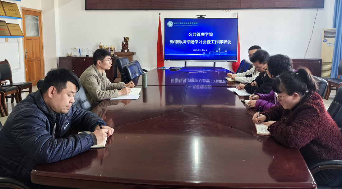 当前位置: 首页 >> 教学动态 >> 正文 立德树人守初心 铸魂育人担使命 太阳集团tyc122cc各系部召开师德师风专题教育学习会 时间:2025年12月03日 16:15 作者: 王长征 为落实新时代教师队伍建设要求,引导全院教职工坚定理想信念、涵养高尚师德、提升育人能力,太阳集团tyc122cc于近日召开师德师风专题教育学习会。 11月26日,学院教学副院长、各系部主任以及教务办工作人员召开师德师风专题学习会暨工作布置会。会议开始,王长征副院长领学了《新时代高校教师职业行为十项准则》和《重庆工商大学教职工职业行为负面清单(试行)》等重要文件,强调了教师职业道德的底线要求和红线意识。随后,对学院师德师风专题教育学习工作进行布置,要求各系部高度重视对系部教师师德师风的要求,这既是对教师的警示提醒和严管厚爱,也是深化学院教学育人的关键之举。 11月27日,我院公共管理系、劳动与社会保障系、城乡规划系、土地资源管理系四个系部分别召开师德师风专题教育学习会。各系部主任分别领学相关政策文件要求,理解政策文件的核心要义和行为规范,并且结合系部自身专业特征和实际情况,进行反思和讨论,严格自觉对照准则要求,规范从教行为,提升师德素养。 师德师风建设永远在路上。学院及系部召开专题学习会,使得全体教师进一步统一了思想,提高了认识,明确了方向。在未来,学院将以此次学习为新的起点,内化于心、外化于行,把师德规范融入教育教学全过程,构建具有公管特色的师德师风建设长效机制,营造风清气正、崇德向善的教书育人环境。 上一条:我院劳动与社会保障专业学生在第四届“全国大学生社会保障优秀调查报告与案例分析报告大赛”中获得佳绩 下一条:校企协同赋能设计启蒙 手绘课程点亮规划新生专业之路 【关闭】