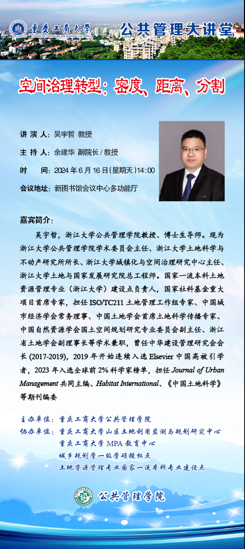 当前位置: 首页 >> 科学研究 >> 学术讲座 >> 正文 公共管理大讲堂——空间治理转型:密度、距离、分割 时间:2024年06月10日 19:44 作者: 上一条:公共管理大讲堂——浙江大学太阳集团tyc122cc吴宇哲教授做“空间治理转型:密度、距离、分割”学术讲座 下一条:我院城乡规划系教师受邀参加2024第二届山地人居环境学术研讨会并作主题报告 【关闭】