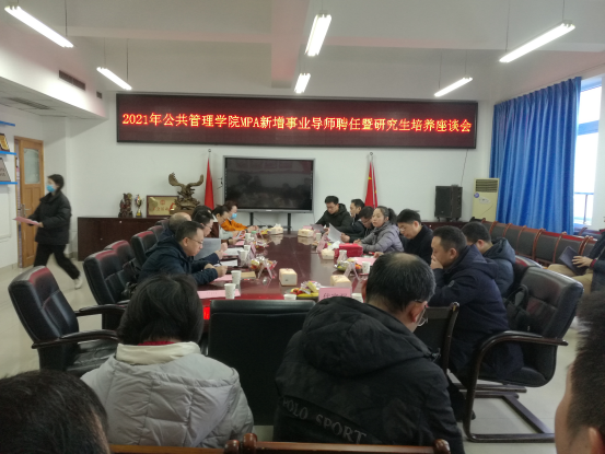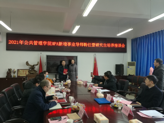 当前位置: 首页 >> 研究生教育 >> 工作动态 >> 正文 我院召开MPA新增事业导师聘任暨研究生培养座谈会 时间:2022年01月10日 09:18 作者: 杜挺 我院召开MPA新增事业导师聘任暨研究生培养座谈会 为认真总结我院MPA教育工作,推进MPA教育改革和高质量发展,提升研究生培养质量,1月9日上午,学院在81004会议室召开MPA事业导师座谈会。学院领导班子成员、校内MPA学业导师,以及重庆市社科联副主席潘勇,重庆博众城市发展管理研究院院长阎占斌等校外11名MPA事业导师参加了座谈会。会议由副院长余建华主持。 首先,李孜院长代表学院对各位事业导师的到来表示了欢迎,并简要介绍了MPA教育中心近期的发展概况与战略部署,总结了近一年来,MPA教育中心与事业导师的交流合作成果,并高度赞扬了学院MPA发展历程中事业导师发挥的重要作用。紧接着,余建华副院长宣读了我院增列MPA事业导师名单,并由李孜院长为彭劲松、李乔、李妍均等8位校外事业导师们颁发了聘书。 随后,各位校外事业导师在会议上积极建言献策。重庆市社科联副主席潘勇对学院校外导师工作表示了赞许。他提出了三点建议:一是要定期与学生进行交流,在选题、开题、调研等关键环节给学生把好关,确保学生高质量发展。二是鼓励学生多写、多练,从小论文着手循序渐进地推动学位论文的完成。三是建立师生微信群,加强师生互动。重庆市社科联彭劲松所长高度肯定学院对事业导师工作的重视,认为事业导师这项工作责任重大、使命光荣,并从选题把关、联合培养、定期交流等方面提出了宝贵建议。重庆市卫健委吴长文处长从自身工作实践出发,提出事业导师要大力倡导MPA研究生深入基层,“从严从实”地抓好调查研究,并立足国家需求做好成果转化。其他校外事业导师还对如何加强校外导师的作用、更好地开展校内外合作等方面提出了许多独到见解。 最后,李孜院长再次对校外事业导师的到来及其给予太阳集团tyc122cc的大力支持表示衷心的感谢,诚挚地邀请事业导师到学院开展专题讲座和课堂讲座,并让学生尽可能地参与到事业导师的科研项目和社会实践中去,进一步提升我院MPA研究生的专业能力、职业能力和应用能力。 此次座谈会,不仅为我院“双导师制”的落实与完善指明了方向,还加强了校内外导师的沟通了解,有利于充分达到培养实践型、复合型、应用型人才的目标,提高人才培养质量。 上一条:首届MPA研究生学位论文预答辩顺利结束 下一条:我院2020级MPA研究生学位论文二次开题答辩如期进行 【关闭】
