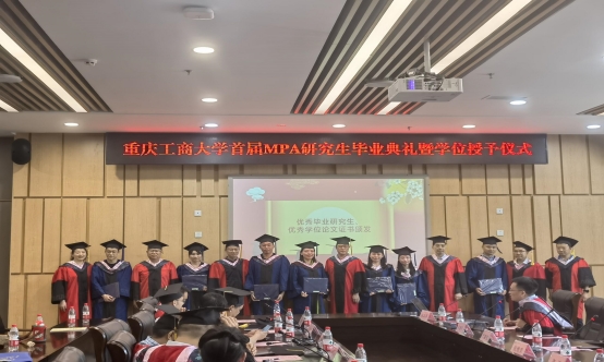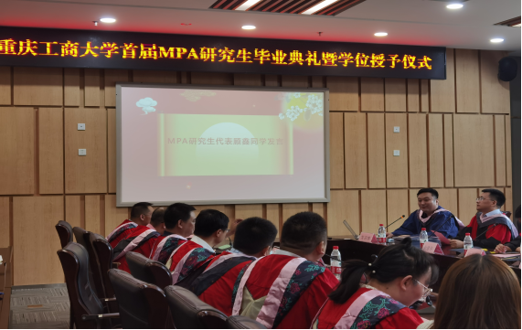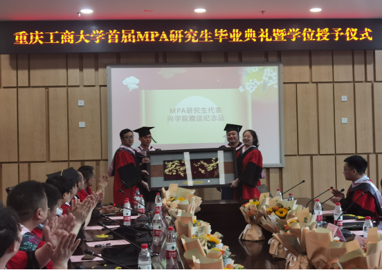 当前位置: 首页 >> 研究生教育 >> 工作动态 >> 正文 我校首届MPA研究生毕业典礼暨学位授予仪式隆重举行 时间:2022年06月27日 14:05 作者: 6月25日,重庆工商大学首届公共管理硕士(MPA)毕业典礼暨授位仪式在图书馆会议中心第五报告厅隆重举行。太阳集团tyc122cc领导班子,19级全体学业导师,事业导师代表潘勇、朱刚令、阎占斌、潘建波,MPA教育中心工作人员,MPA毕业研究生及其亲属出席典礼,共同见证这一难忘时刻。典礼由副院长余建华主持。 毕业典礼在2022届毕业生三年来的学习生活短片和毕业寄语中拉开序幕。悠扬抒情的乐曲、温馨感人的照片,让同学们仿佛又回到了三年来的学习生活中。 典礼上,学院院长李孜教授致辞。她向获得公共管理硕士学位的14名毕业生表示了热烈的祝贺,以学院“正己允公,明理笃行”的院训勉励同学们要加强自身修养,增强社会同理心和感受力,肩负起公共事业发展的社会责任,并表示母校期待大家的成功、幸福,为大家的进步而自豪。 2019级MPA学生代表顾鑫同学代表本届毕业生表达了对母校、对全体教师的感谢和不舍之情,并号召同学们在今后的工作和学习中不断进步。 学业导师谢金林教授用“栽树-开花-结果”的比喻风趣幽默地讲述了重庆工商大学MPA学位点成立发展和首届毕业生顺利毕业的艰辛过程和来之不易,赢得大家阵阵掌声。 事业导师代表阎占斌老师表达了对毕业生的祝福,希望大家把所学的知识运用到工作中,不断提高工作能力,同时,还告诫大家要继续设立新的目标,期盼大家不断向母校传来进步的捷报和喜讯。 副院长余建华教授宣读准予2022届MPA毕业生授予学位文件和MPA优秀毕业生、优秀学位论文表彰文件,由校内外导师为每位毕业生拨穗授予学位并向优秀毕业生、优秀毕业论文获奖者颁发荣誉证书。 随后,2022届MPA毕业生向学院赠送象征“桃李满天下”的匾额,表达了全体同学对学院的美好祝愿。同时,学院也向每位毕业生回赠寓意“师生情、一辈子”的毕业礼物,场内响起热烈的掌声。 接着,本届毕业生向MPA管理中心行政秘书任志凤老师表达了深深的感谢,任志凤老师在发言中,对首届MPA毕业生给予了殷切希望,并向毕业生及家属表达了美好祝愿。 学院党委书记张维贵教授作了总结性发言,向一直以来支持MPA工作的社会各界朋友表示衷心的感谢,希望同学们在以后的工作中能秉承校训,将在学习中的所学、所悟、所感用到实际工作中去,理实结合,服务为民。 最后,2022届MPA毕业生们怀着激动之情与学院领导和校内外导师在含弘广场合影留念。 上一条:事业导师代表阎占斌在我院首届MPA研究生毕业典礼上的发言 下一条:李孜院长在我院首届MPA研究生毕业典礼上的致辞 【关闭】