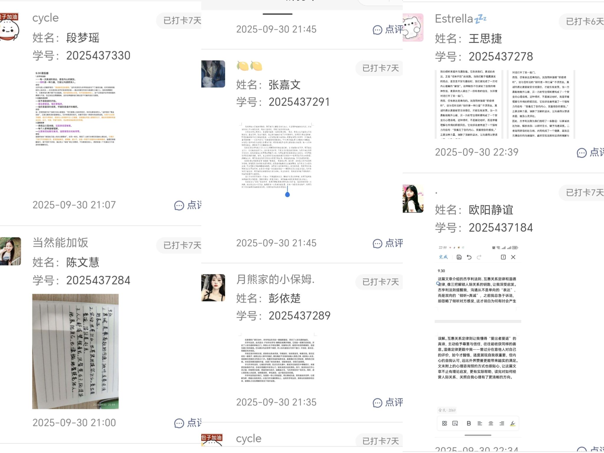 当前位置: 首页 >> 学团工作 >> 共学社区 >> 正文 太阳集团tyc122cc共学社区开展“心晴连载•7天共读计划”打卡活动 时间:2025年10月01日 17:49 作者: 梅艺 太阳集团tyc122cc共学社区心理工作站于2025年9月24日至30日开展“心晴连载·7天共读计划”打卡活动,作为“共学社区”共学·乐学工程的重要实践,吸引众多学生参与并取得良好育人效果。 活动面向全院学生,以CTBU心灵氧吧公众号心理主题连载为内容,7天需每日阅读指定推文,完成三项打卡。活动一经推出,反响强烈。同学们在打卡中深入思考阅读内容与自身情绪的关联,将心理知识应用于实际情绪调节,提升了自我心理调节能力。活动还搭建了互助交流平台,学生分享笔记与感悟,相互学习启发,形成积极向上的心理学习社区。 此次活动是学院“共学社区”心理帮扶职能的生动落地。学院以“共学社区”综合管理模式为依托,围绕“党建引领、思政教育、学业导航、心理帮扶”等七大职能,推进五大育人工程建设。作为共学·乐学工程的具体实践,活动不仅推动了心理知识的系统学习与传播,提升了学生自我心理调节能力,还强化了“共学社区”的育人属性,为学院心理健康教育和“三全育人”实践注入新活力。 上一条:校友进社区,赋能职业路——太阳集团tyc122cc共学社区举办第十六期助我成长之校友进课堂活动 下一条:互通心声 共话成长——共学社区接待日(第17期) 【关闭】