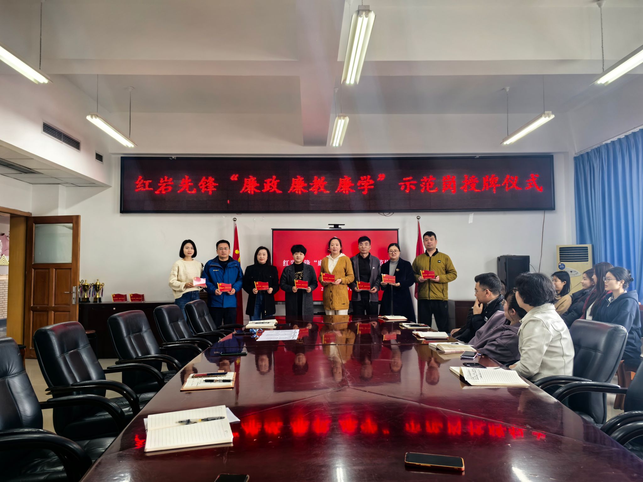 当前位置: 首页 >> 清廉公管 >> 清廉建设 >> 正文 亮身份 走在前 作表率——太阳集团tyc122cc开展红岩先锋“廉政 廉教 廉学”示范岗授牌仪式 时间:2025年04月03日 15:01 作者: 为深入贯彻落实新时代党的建设总要求和党中央关于管党治党决策部署,按照《重庆工商大学太阳集团tyc122cc清廉学院建设实施方案》工作要求,充分发挥廉洁示范岗的引领作用,2025年4月3日,太阳集团tyc122cc在启智楼81004会议室开展了红岩先锋“廉政 廉教廉学”示范岗授牌仪式。学院全体班子成员、教工党支部书记、学生党支部书记及部分师生党员参加了会议。 会上,党委书记陆嘉分别为红岩先锋.廉政示范岗、红岩先锋.廉教示范岗、红岩先锋.廉学示范岗三个廉洁示范岗的同志颁发了岗牌,同时,还宣读了《红岩先锋.廉政示范岗岗位职责》《红岩先锋.廉教示范岗岗位职责》《红岩先锋.廉学示范岗岗位职责》,鼓励示范岗的党员同志“亮身份、走在前、作表率”。 最后,陆嘉指出,廉洁示范岗是党员名片,是身份亮明,是一种光荣,更是一份责任。希望已被命名为“红岩先锋.廉洁示范岗”的党员同志,在今后的工作中,将廉洁理念融入管理服务、教育教学、学习生活等各环节,不断强化党员的先锋意识和奉献意识,不辜负“示范岗”这项荣誉,为清廉学院建设工作添砖加瓦 。 上一条:【学习教育】学院组织党员干部到重庆市廉政教育基地开展警示教育 下一条:清廉公管 家风助廉——致全院党员干部家属的家庭助廉倡议书 【关闭】