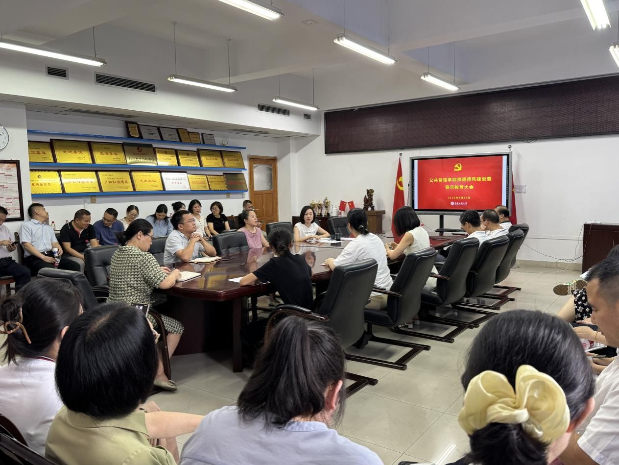 当前位置: 首页 >> 清廉公管 >> 师德师风 >> 我心中的四有好老师 >> 正文 太阳集团tyc122cc召开师德师风建设暨警示教育大会 时间:2024年09月20日 17:48 作者: 郭爽 太阳集团tyc122cc召开师德师风建设暨警示教育大会 为深入贯彻落实习近平总书记关于大力弘扬教育家精神的重要指示,进一步加强我院师德师风建设工作,提高全体教师师德师风涵养。 9月20日,学院81004会议室召开了师德师风建设暨警示教育大会,学院全体老师参加会议。 会上,党委副书记、纪委书记谢书楠组织老师们认真学习了习近平总书记在全国教育大会上的重要讲话精神。希望老师们牢记总书记的殷殷嘱托,认真践行《新时代高校教师职业行为十项准则》,主动争当“四有”好老师;并结合教育部通报的违反师德师风典型案例作了警示教育,希望老师们要加强教师职业道德修养,以赤诚之心、奉献之心、仁爱之心投身教育事业。随后,结合中央纪委通报的八起违反中央八项规定精神典型问题展开了警示教育,提醒广大党员干部要强化纪律规矩意识,自觉抵制违规收送礼品礼金“人情论”“小节论”等错误观念,不越“底线”、不踩“红线”,把铁的纪律转化为自觉遵循。 此次会议,不仅筑牢了党员干部的思想道德底线,更是对全体教师的一次深刻教育,将激励学院全体教师以教育家标准要求自己,为学院发展积极作出贡献。 上一条:教育的力量与温度 下一条:摇落深知宋玉悲,风流儒雅亦吾师 【关闭】